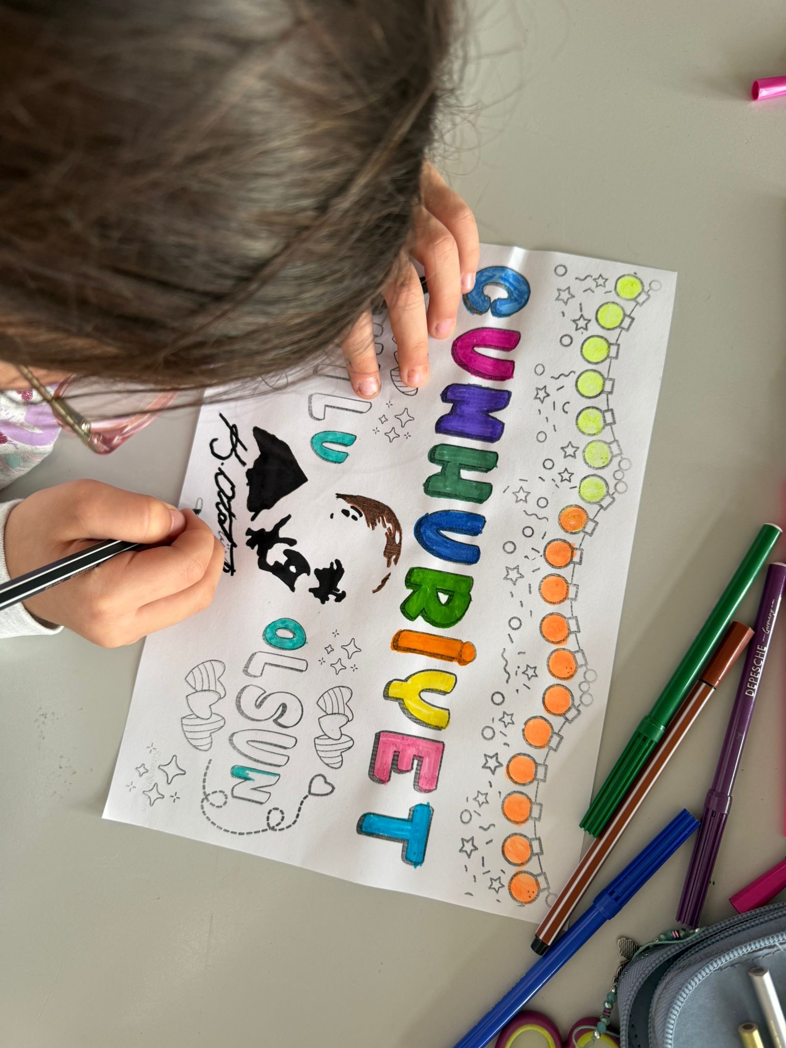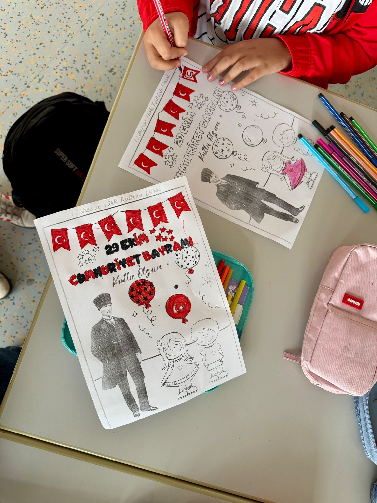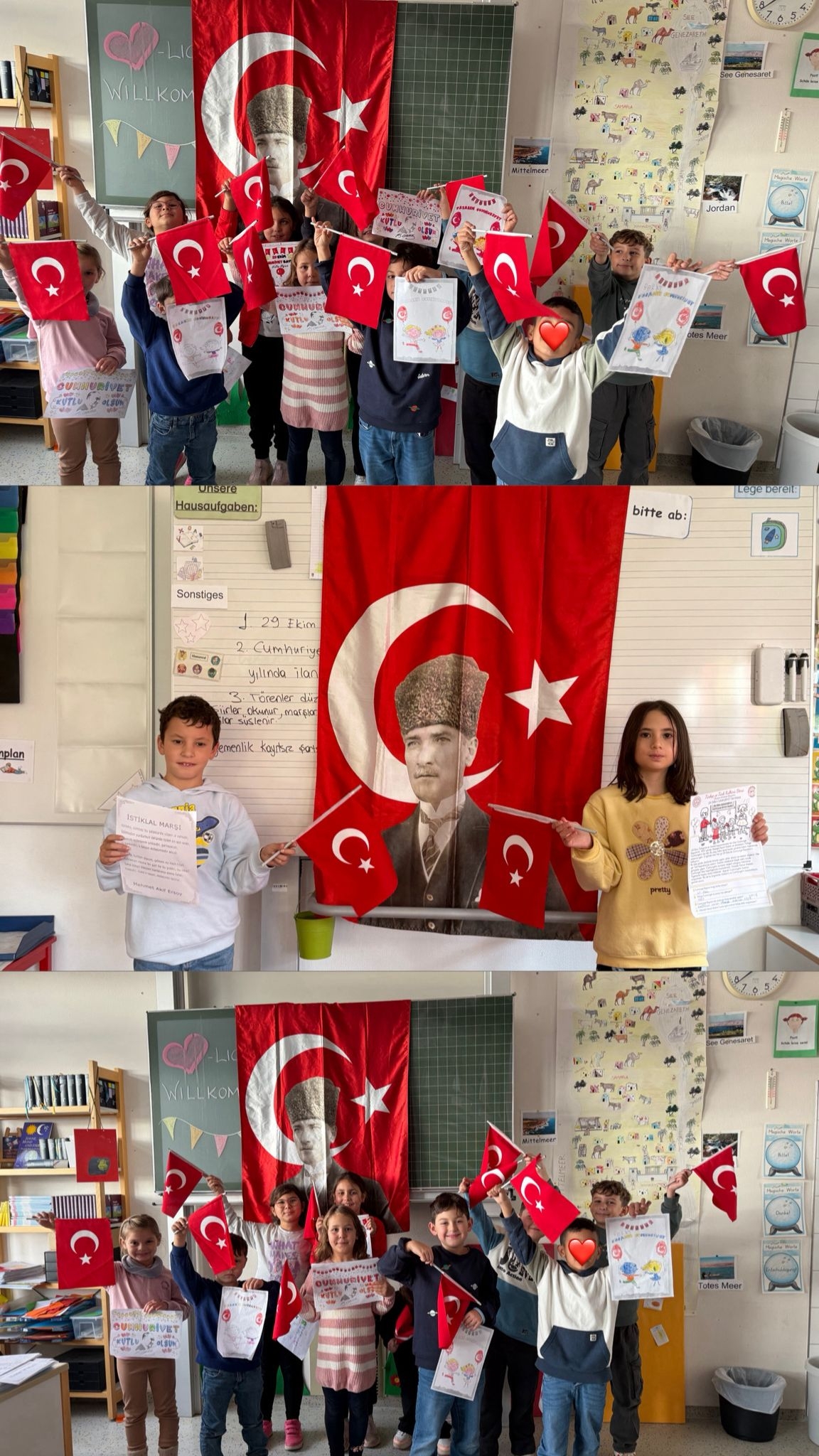Öğrencilerimiz, öğretmenlerinin rehberliğinde bu hafta boyunca Cumhuriyetimizin 102. yılını büyük bir coşkuyla kutluyor. Erlangen Bölgesi Türkçe ve Türk Kültürü Öğretmenimiz Şafak Yüksel Akyüz'e ve sevgili öğrencilerimize bu güzel çalışmalar için teşekkür ederiz.